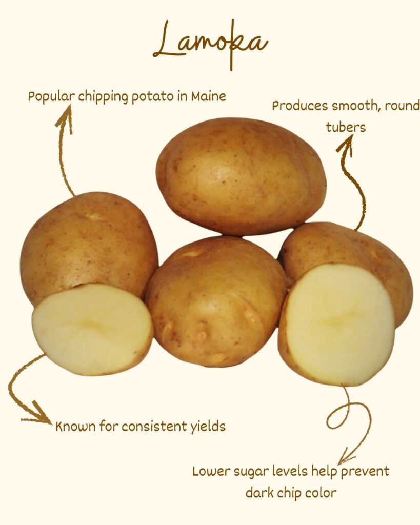 The Maine Potato industry prides itself on producing a high-quality product, whether that product is potatoes destined for your table, french fries, potato chips, or other processed potatoes. The Maine Quality Trademark is your guarantee that the contents are only the highest quality. In fact, before those potatoes can bear that trademark, they are inspected and pass requirements stricter than the United States Department of Agriculture’s U.S. No. 1 grade. Just look for the red, white and blue State of Maine trademark the next time you’re shopping for potatoes!