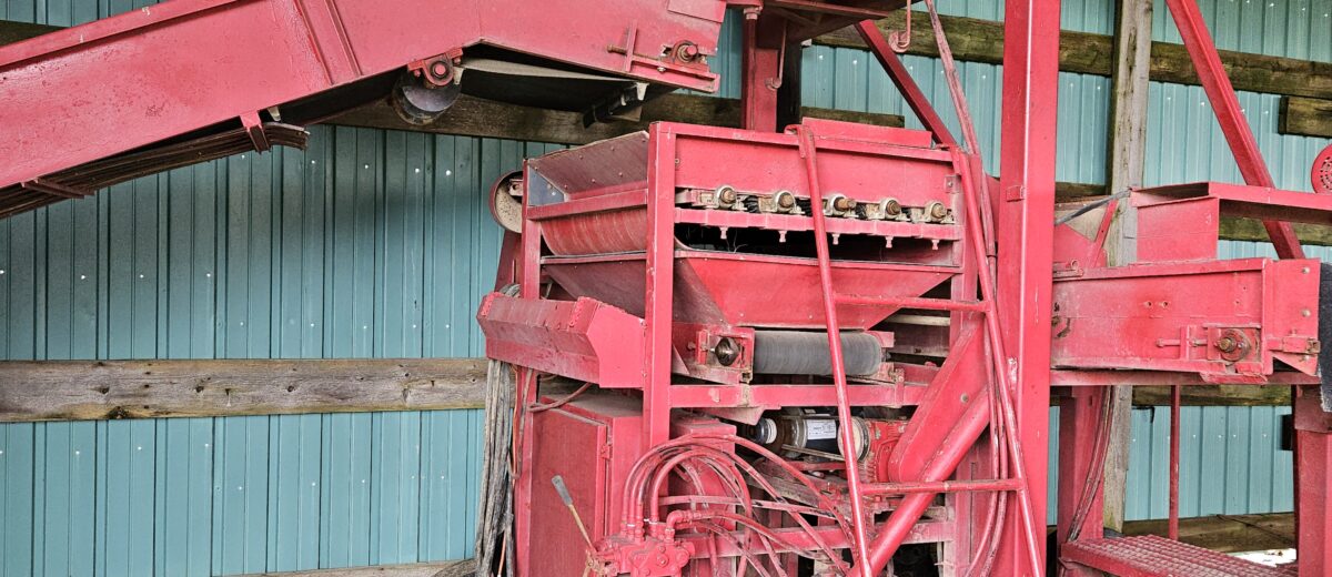 Haines dual box filler. Worked when put into storage. Don't use anymore. Box cradles removed for storage.
